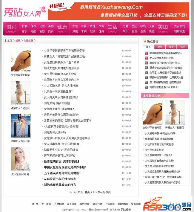 源码简介:粉红风格女性网站,内含五千多条文章数据和美女图片数据,经本站管理测试完整无错,兼容主流浏览器。老实说这款网站源码真心不错,需要的同学赶紧收藏下。