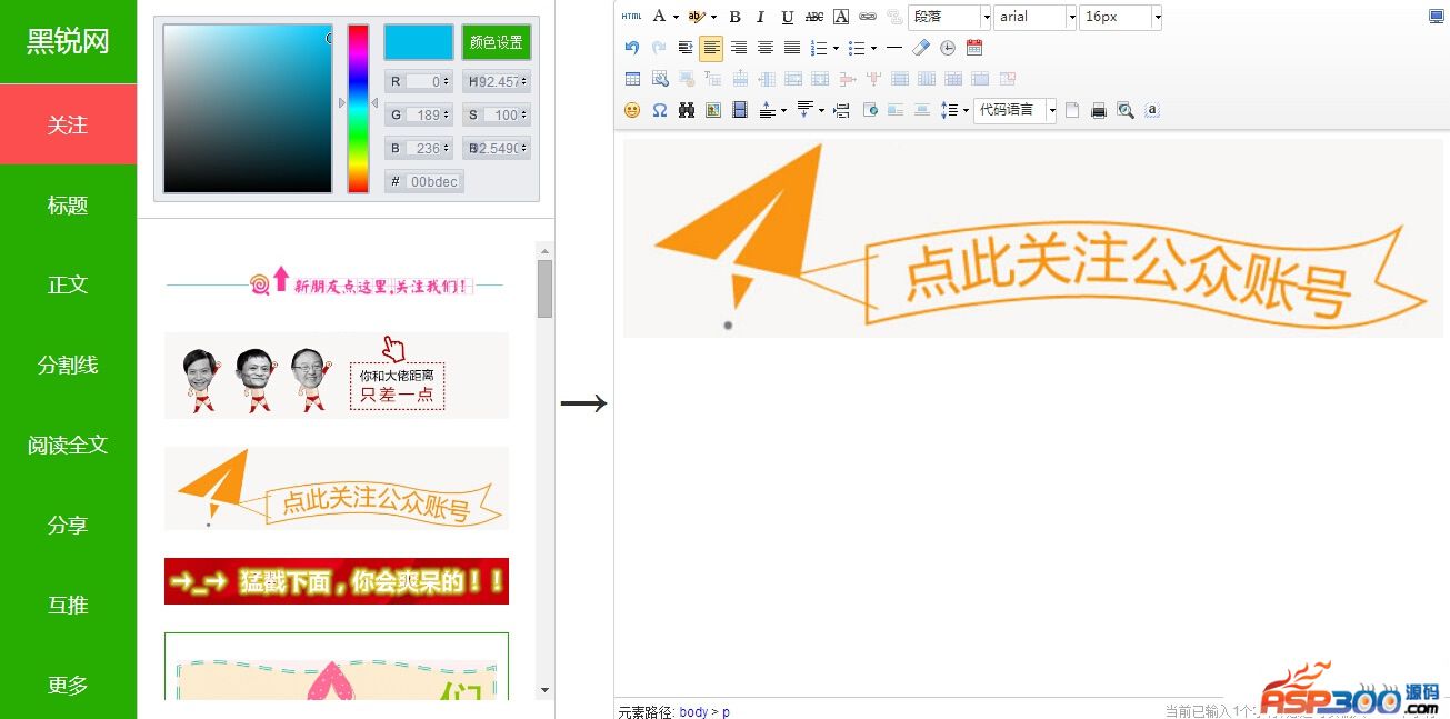 很多人微信图文内容都想有快捷指示关注等提示信息,自己编辑却很难看,微信图文编辑器由此诞生!网上的大部分要收费,而且很多是不能修改使用的,免费分享个可以使用的哈!