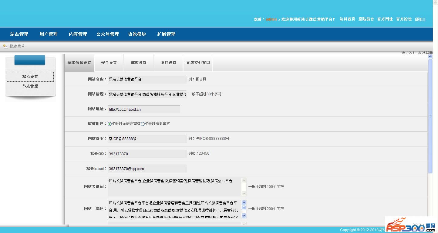 进入后台之后点站点管理》站点设置》设置网站地址之后保存