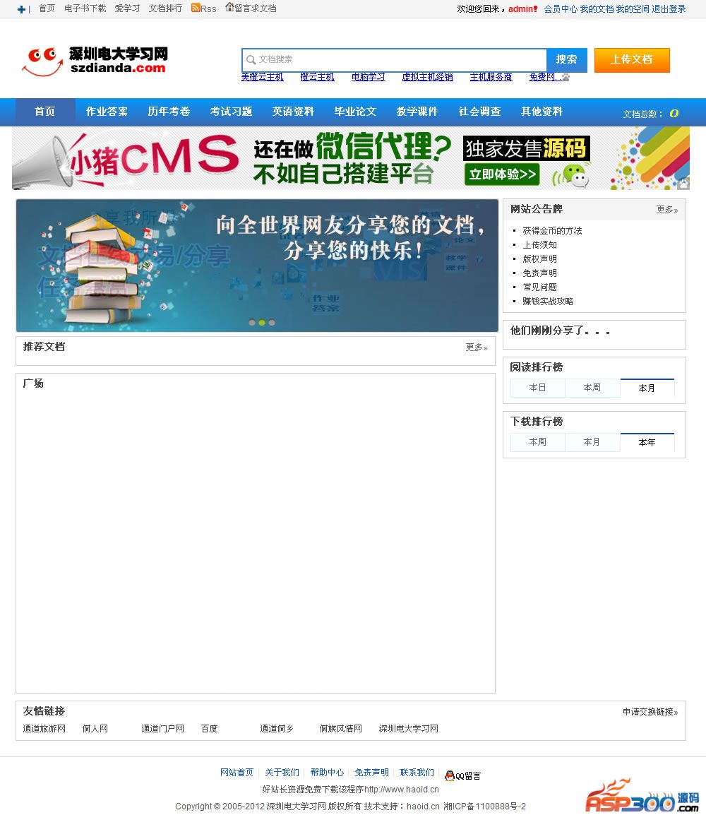 把"php仿豆源码.rar"解压到你的WEB根目录 数据库docshare解压复制到mysql–data