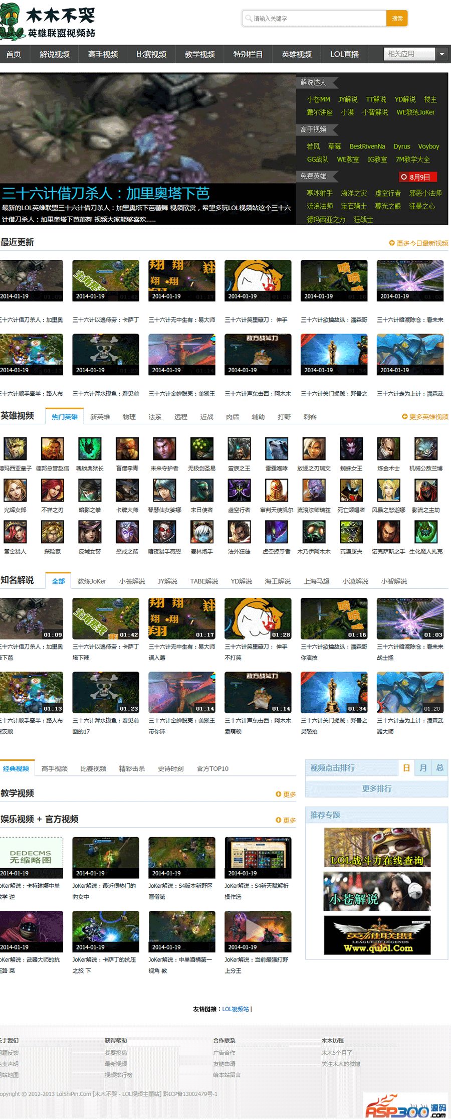 网站适合类型:LOL视频网站模板 视频网站模板 游戏解说网站模板
