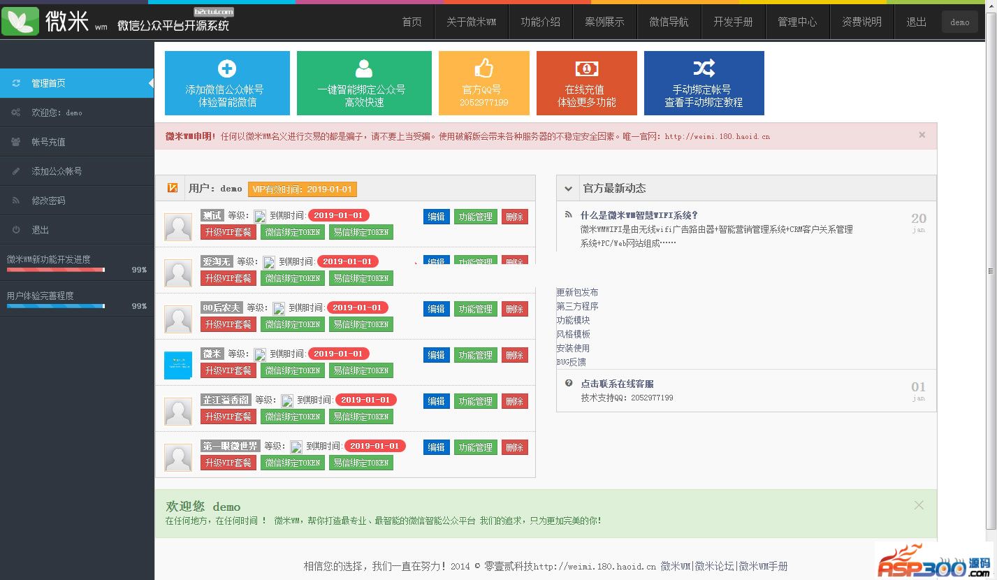 微米微信公众平台源码采用的是某猪微信平台为内核,再次开发来的。这次为童鞋们分享的是最新版的微米微信公众平台源码WM_7.4-20141029商业程序UTF8版本,内置了337套微网站模板,另外前台14套网站风格可以在后台一键切换,非常方便。另外当然少不了代理功能了,其功能也是非常强悍的。在这里灰常感谢提供微米网站程序的童鞋。