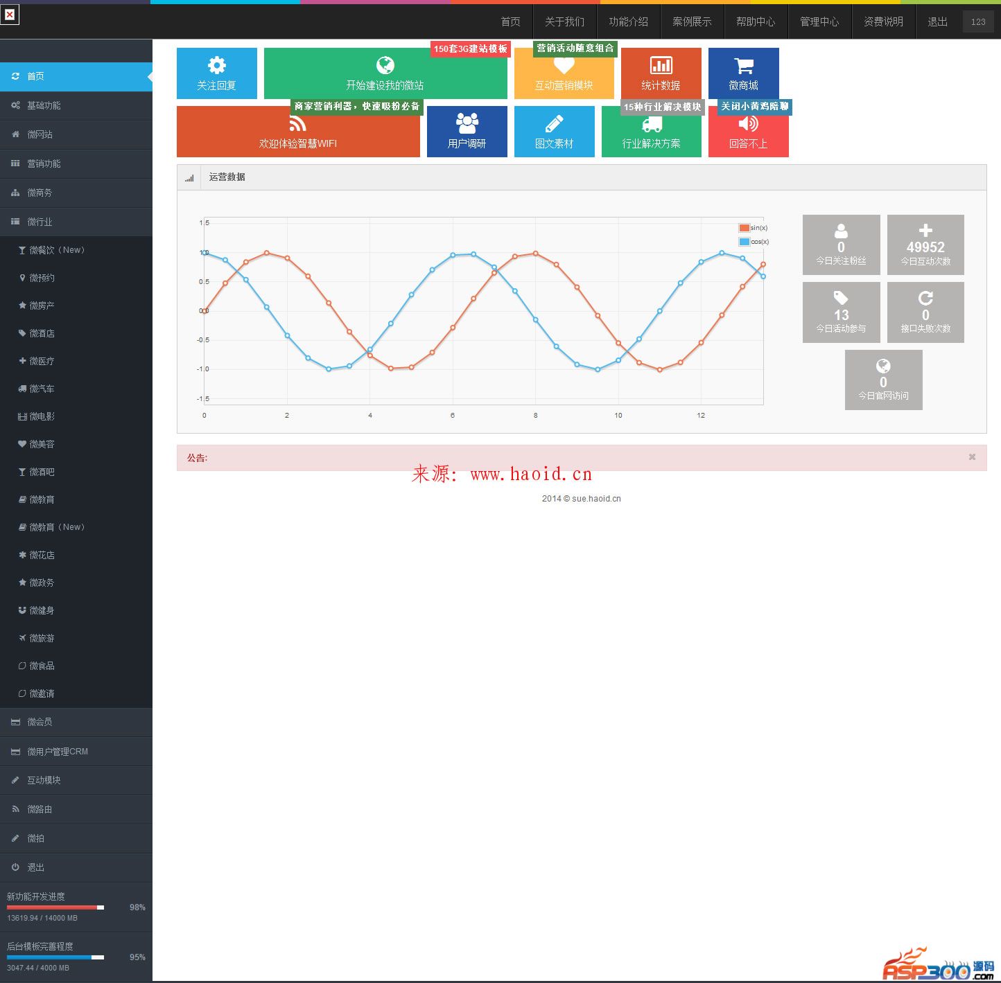 最新苏e互动的商业源码,最新更新至149套模版,带人工客户,微路由,高级微信墙,微社区,摇一摇,高级模版等新功能,完美支持支付宝,财付通支付功能.解密版本,PHP5.2也可以完美运行。开源版适合进行二次开发,源码修改。