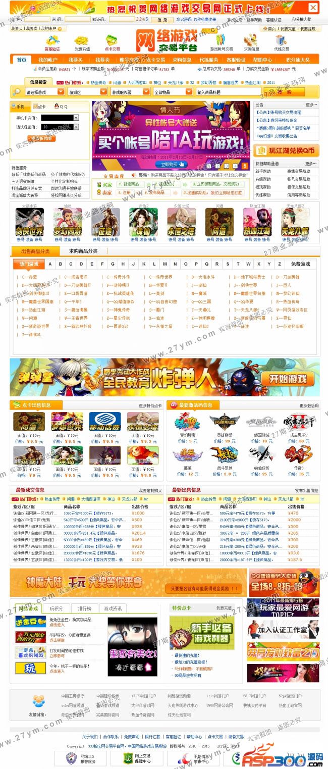 最新仿5173游戏货币交易平台,5173橙色风格源码,点卡销售平台网站源码
