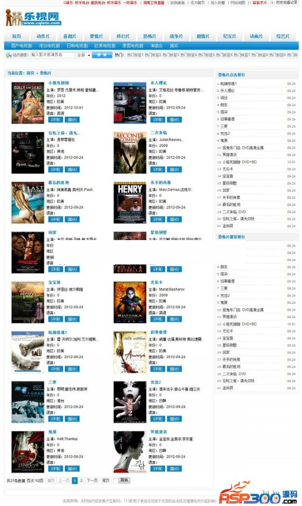 其他说明:经典乐视网影院电影程序整站源码,蓝色风格,模板大气漂亮,采用8090电影的经典电影导航,但对其导航下模块做了改进,比起老板更加具有规模性,搜索引擎亲和度非常高,模板改进以后大大的提高了网站整体的用户体验度。非常不错,此款源码带上万条数据,并且自带了多款采集规则。均支持一键采集。asp+access作为程序核心,无需安装,直接上传空间即可直接进入后台管理。新手建站佳品。