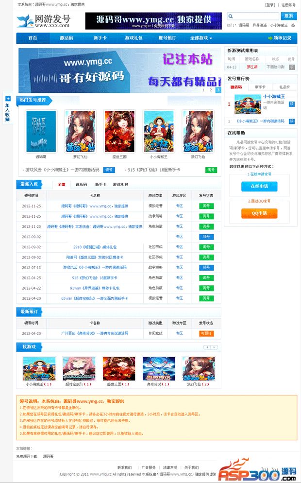 2.游戏求号,系统没有相关游戏发号信息时,用户可以在线提交求号信息,后台可以查看。