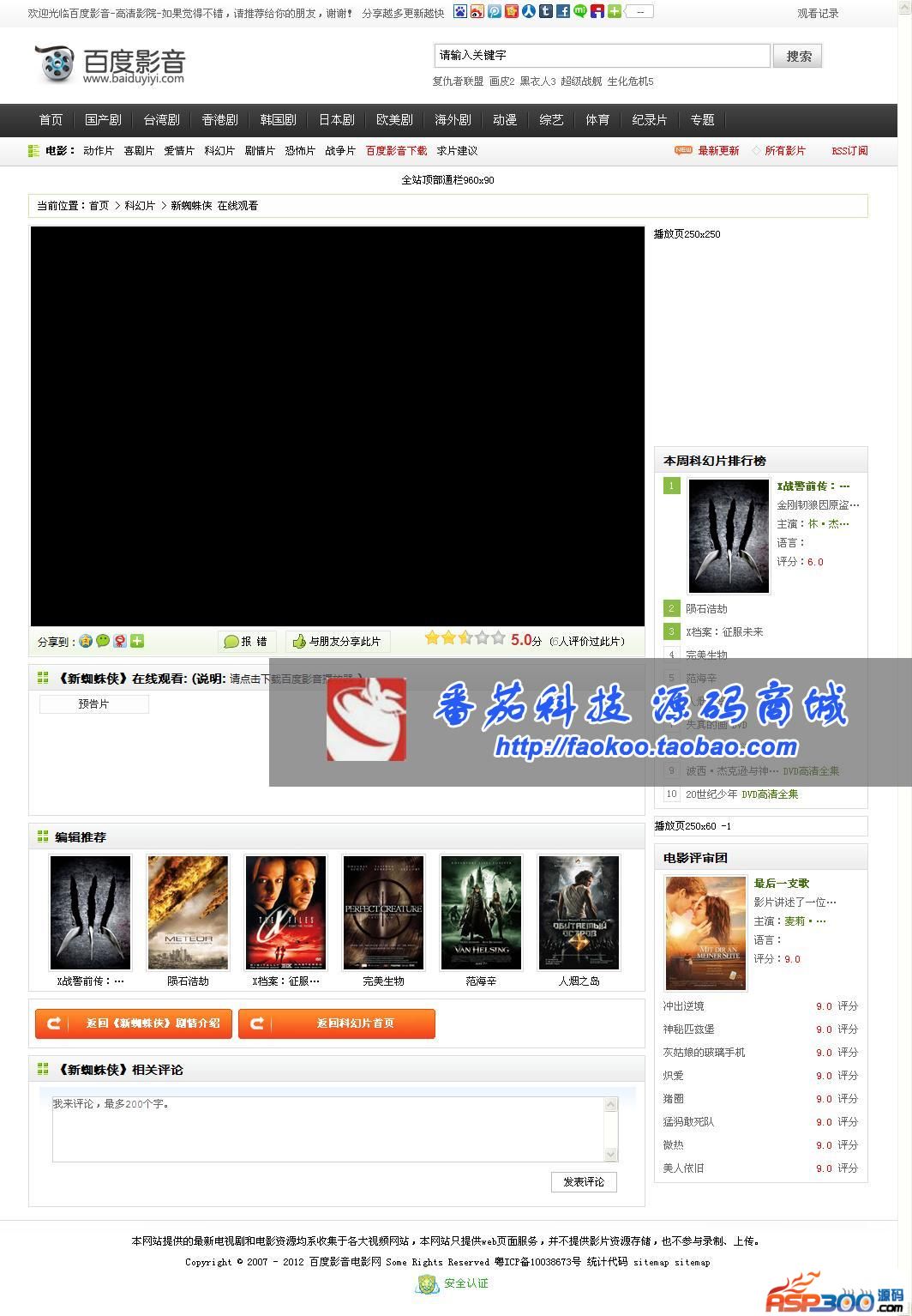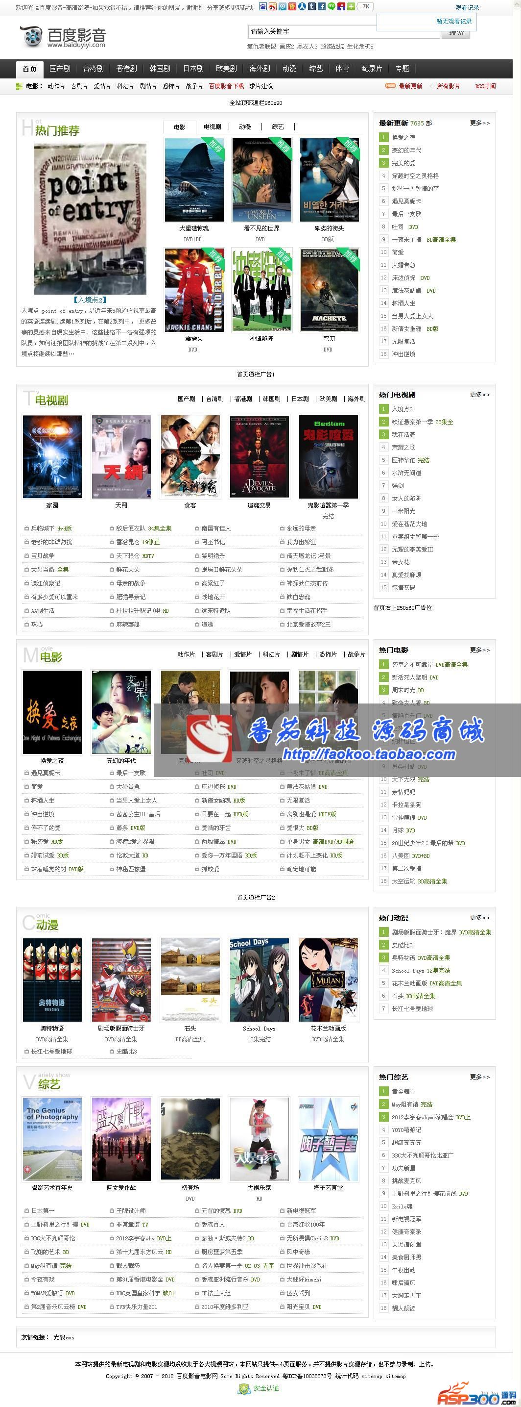 其他说明:随着百度影音渐渐成为用户主流,那么百度影音电影站也随之增加,此款源码非常独特,酷黑风格,模板SEO良好,源码哥收集首发!程序安装极为方便,自带大量数据。后台一键采集几万部最新电影,均为外部链接,不占用空间,后台操作方便,只要认识中文。就能操作。新手也能迅速上手。