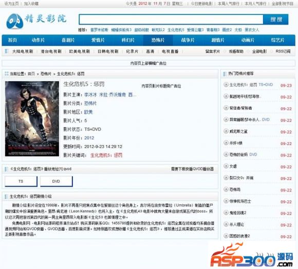源码介绍:最新蓝色风格精品电影网站源码(005),7090电影网源码,精灵电影网模板,马克斯去广告电影源码