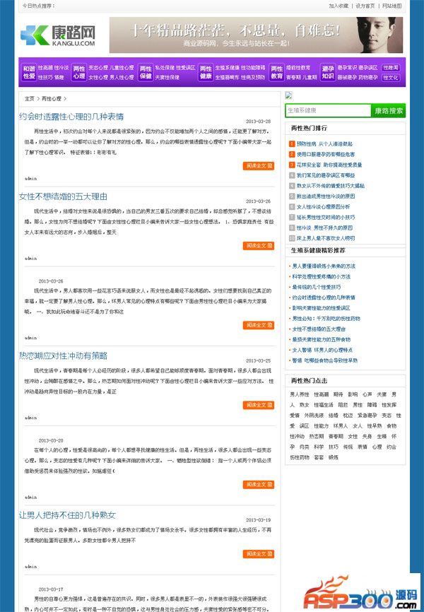 仿康璐健康网源码 PHP两性健康之家文章网站源码