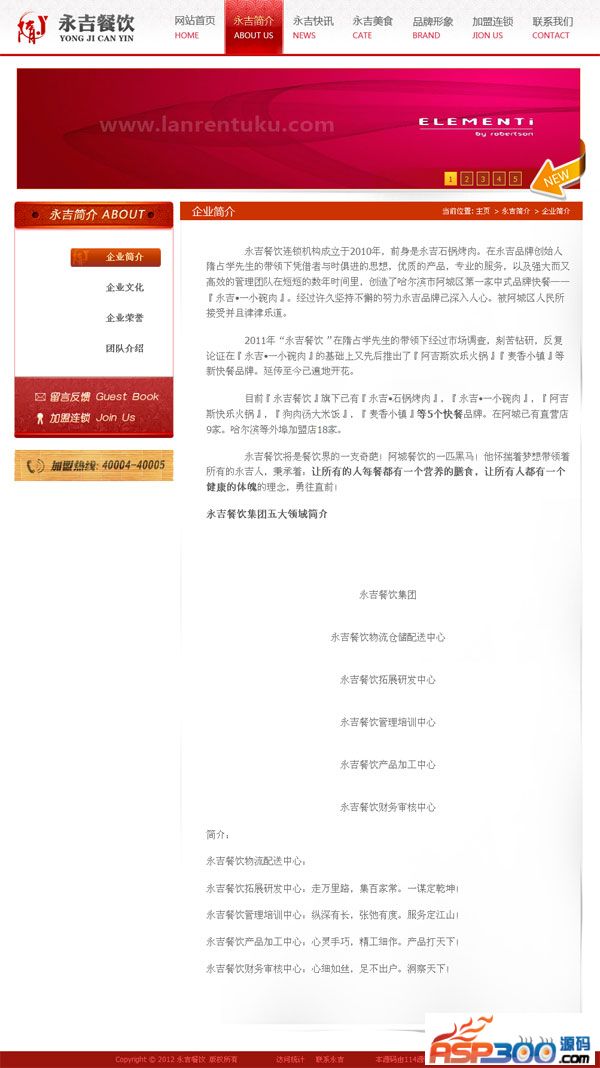 某餐饮网站源码 红色餐饮加盟企业php整站源码