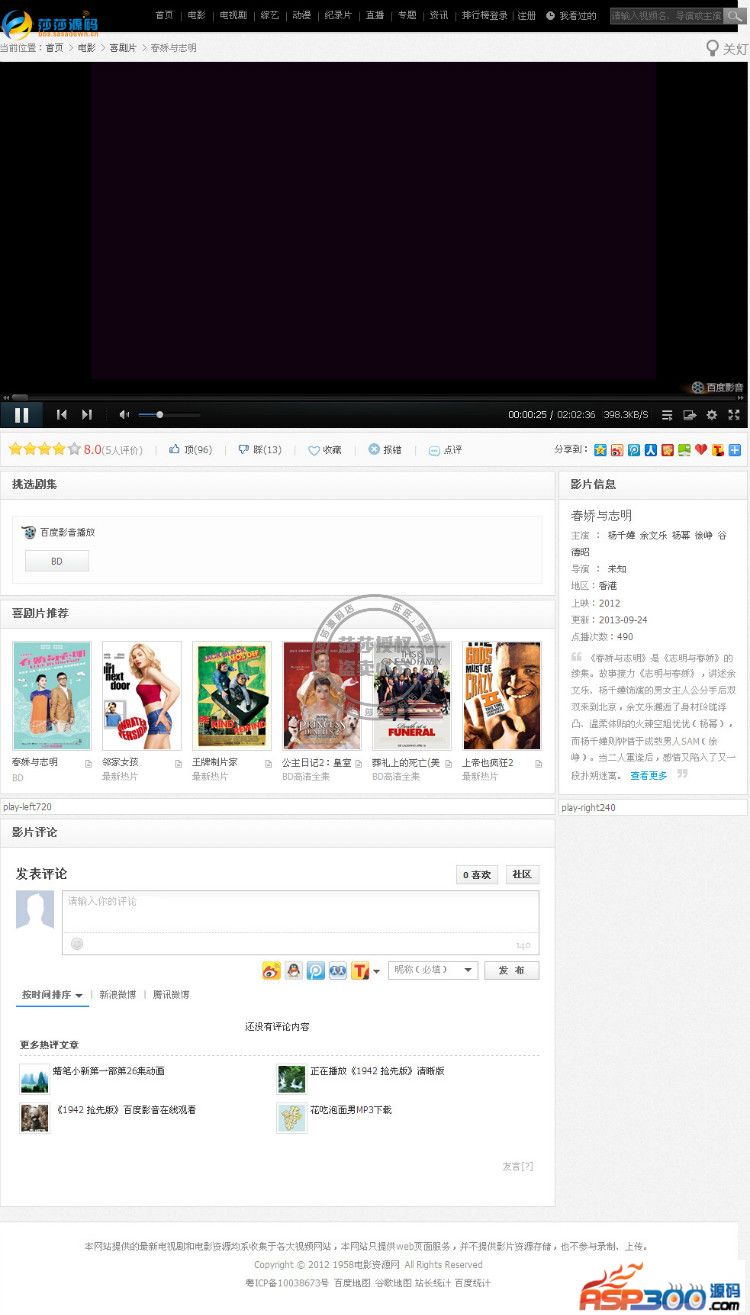 ③这个外面一般传的模板是没有整合和修改这么完善的,拿过来就可以做一个电影站点,如果有不想使用重复模板的可以简单改一下头部,换个好看的头部菜单就可以啦!自己动手DIY其乐无穷的!