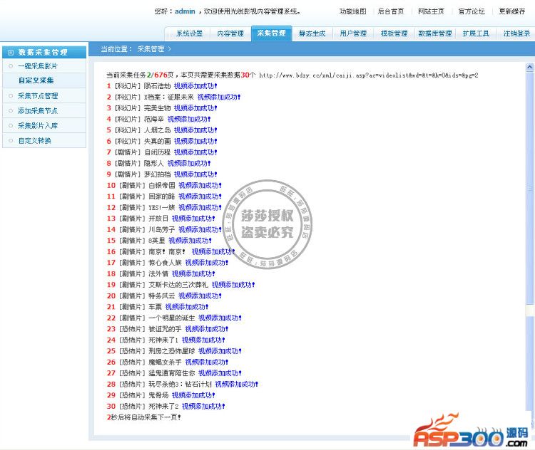 ②源码可以做到定时采集,海量数据采集,一个小时就可以采集上万数据,非常不错,非常适合做电影站点!