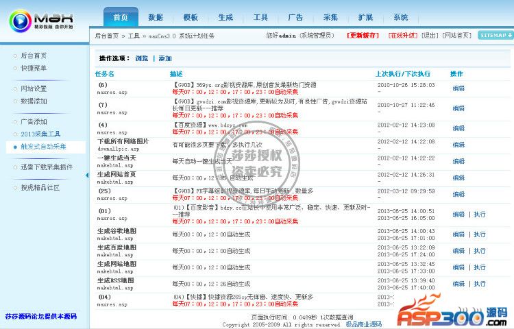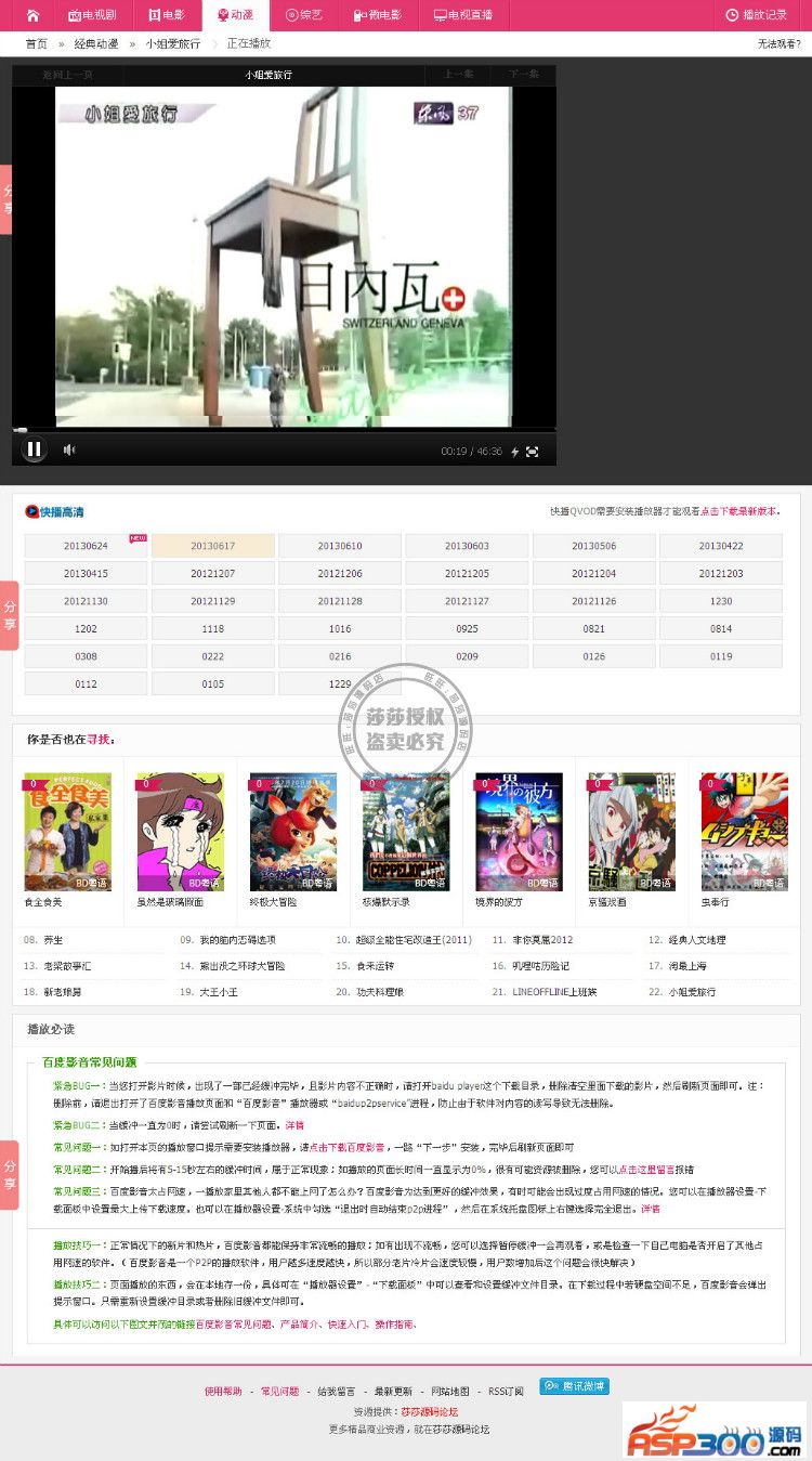 源码说明:新加功能全自动采集+无人值守,加入迅雷下载电影,mp3 mp4,拥有3万多部原始数据,主要栏目,视频剧、电影动漫、综艺娱乐、微电影、留言版、电影排行、口水、电视直播,页面可以显示asp+acc或者选择mssql 全站可选择动态,伪静态,全静态 建群站的站长有福了!