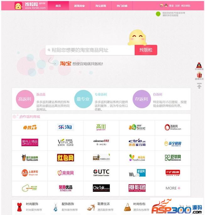 9、淘宝返利。可调用API数据,实现多key自动调用,便于收录及更多数据显示。