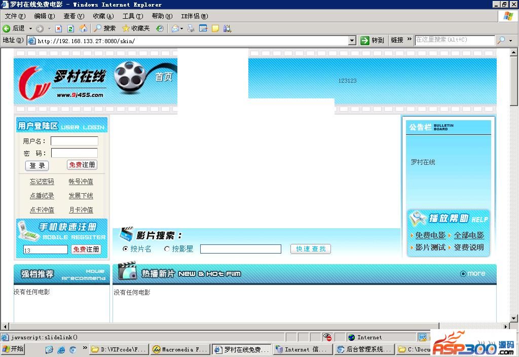 使用前建意修改数据库地址,修改文件请打开各目录的9j455conn.asp修。数据库地址存放在data里