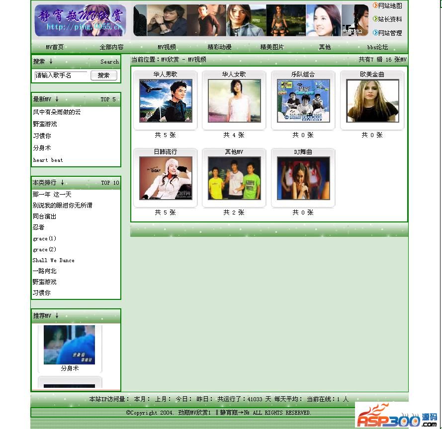 本程序采用独特风格美化加工而成,程序简单实用,实用于初学者和中级ASP学者使用,该程序针对视频文件,包括(wmv,asf,avi,mp3,rm,flash等文件格式)动画文件,图片等的收藏很是好用,程序可以后台上传图片,上传时可浏览图片。