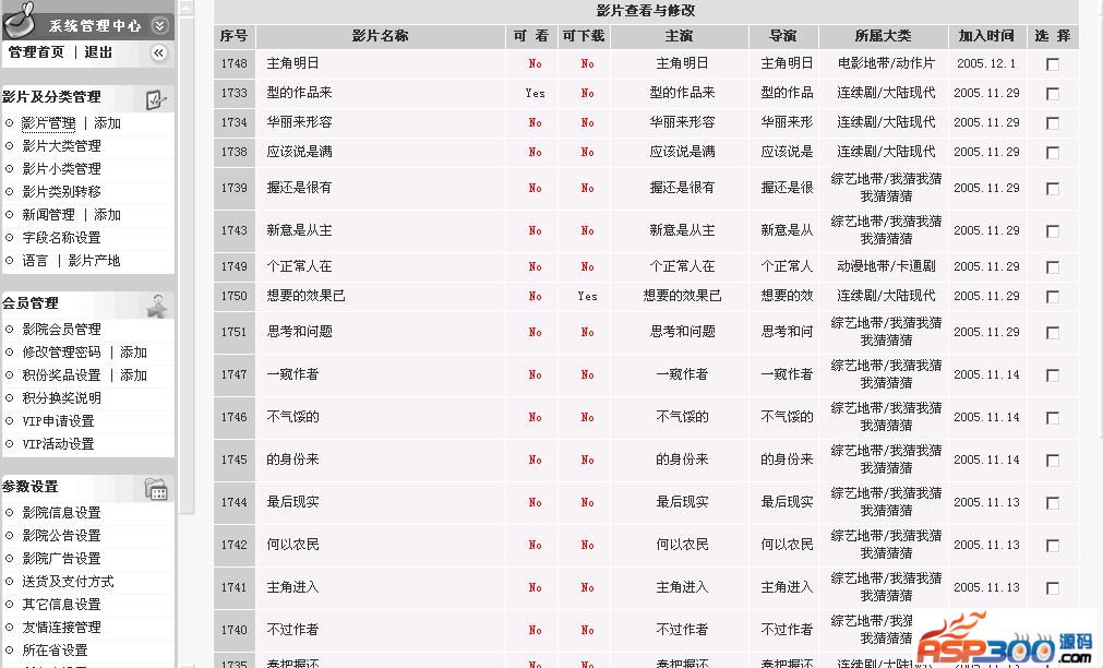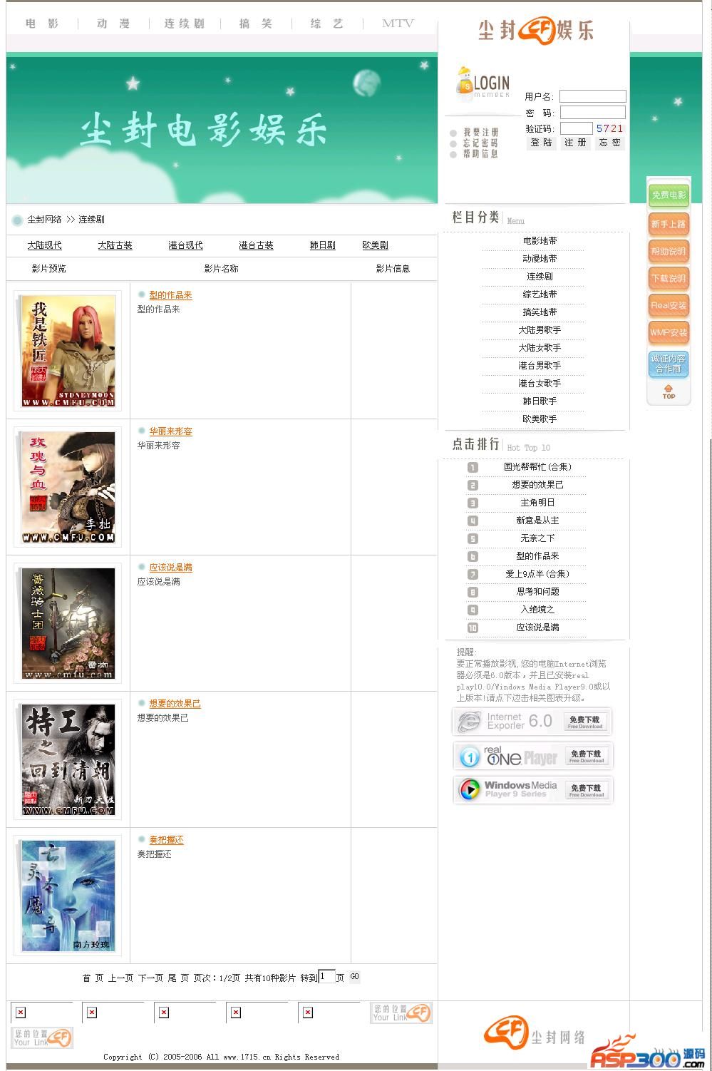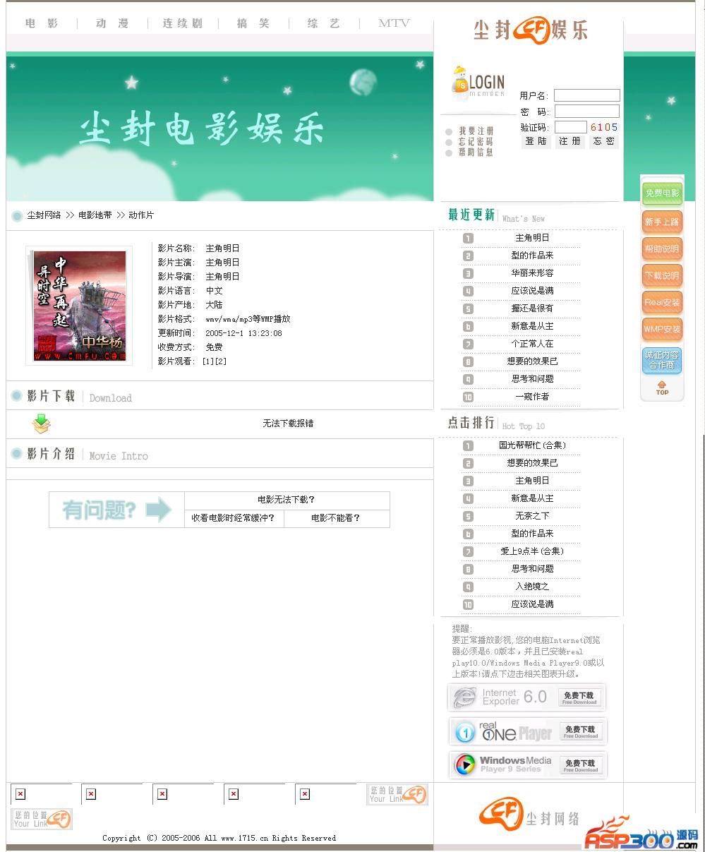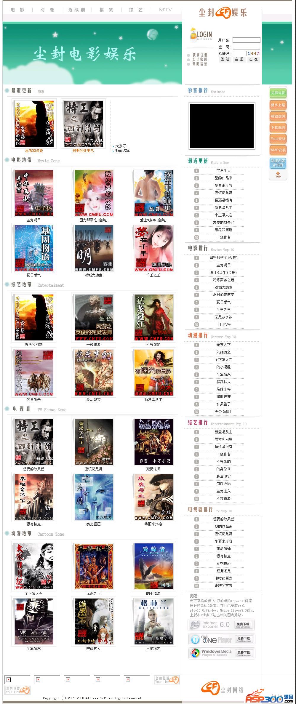 有电影,动漫,连续剧,搞笑,综艺,MTV等栏目,后台可以更改。前后台功能强大。超强!
