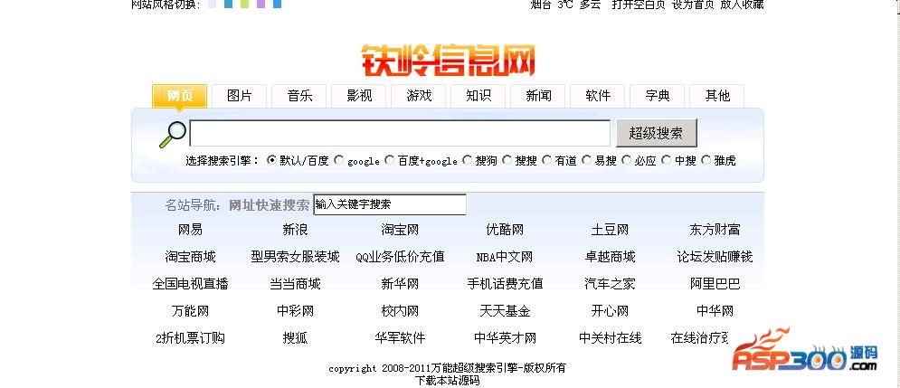 2.可以搜索网页、音乐、影视、软件、图片、小说、新闻、论坛、游戏、Flash、地图、购物、商业特色搜索等10多个搜索主题.
