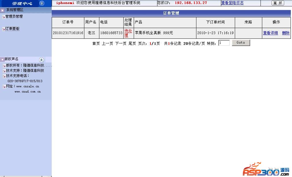 本程序包含"苹果手机全真版"网站前台及后台订单管理系统两部分