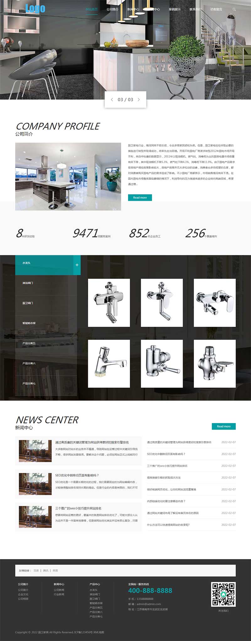 PbootCMS内核开发的网站模板,该模板适用于厨卫设备网站、水龙头阀门网站等企业,当然其他行业也可以做,只需要把文字图片换成其他行业的即可;