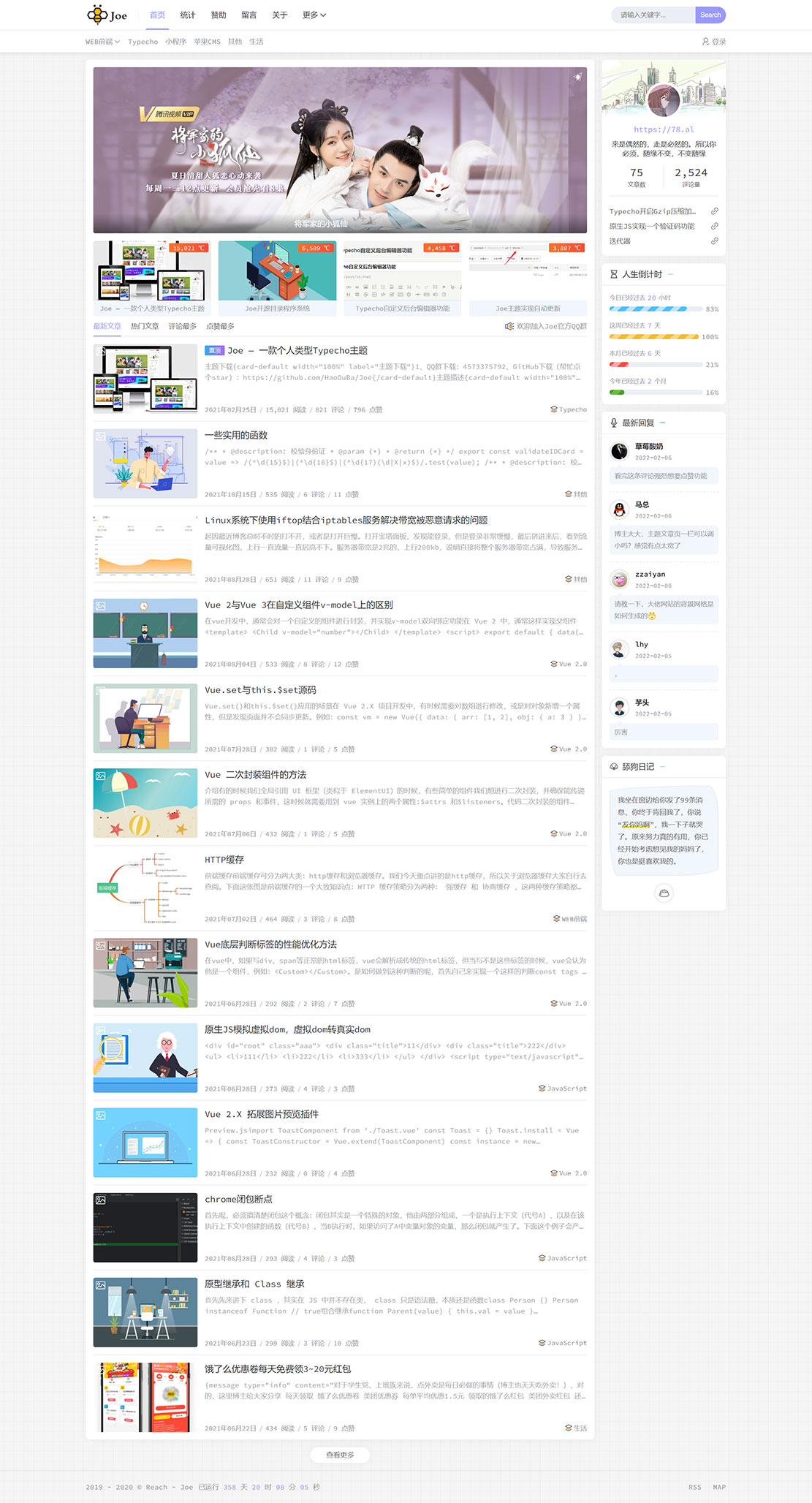 5、主题响应式布局,不依赖任何响应式框架,采用 Joe 独家响应式