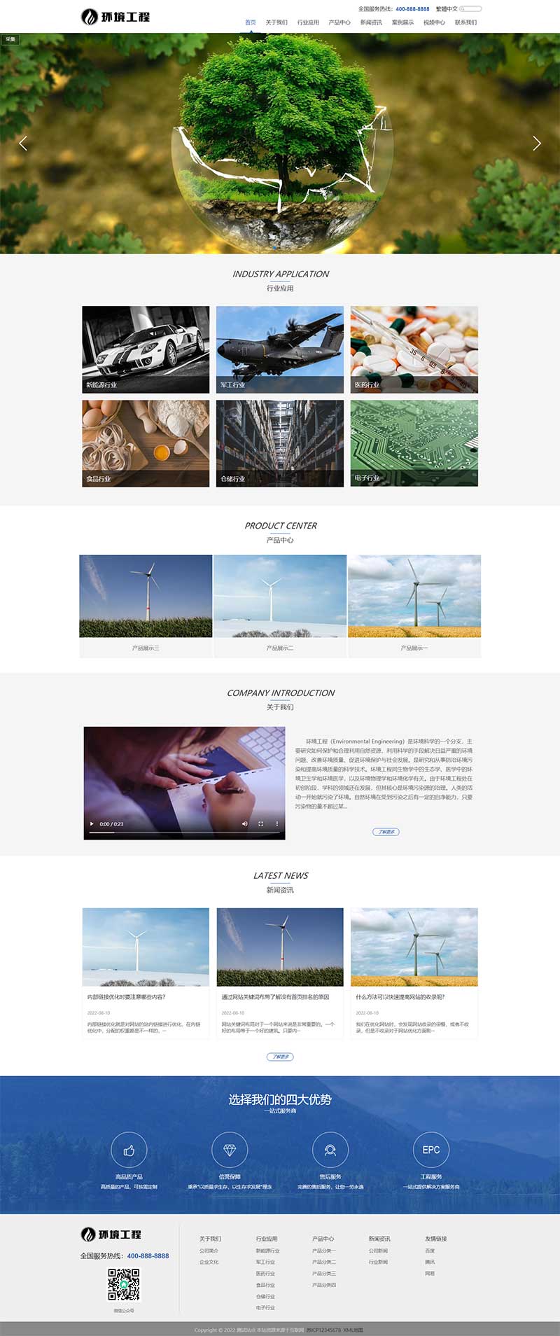 PbootCMS内核开发的网站模板,该模板适用于环保设备网站、环境工程网站等企业,当然其他行业也可以做,只需要把文字图片换成其他行业的即可;