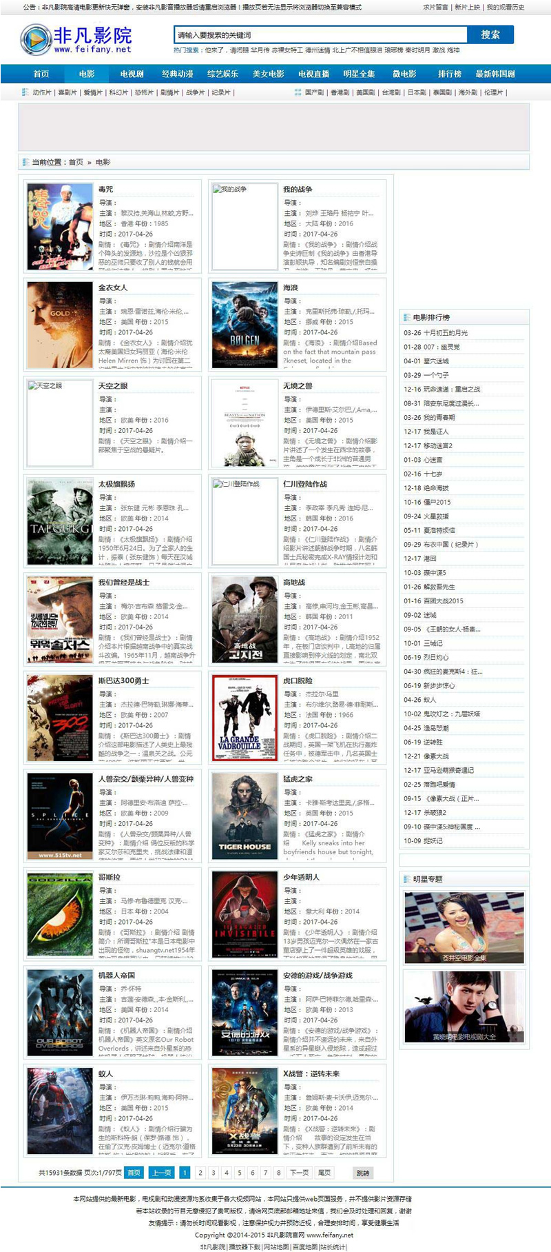 海洋CMS仿非凡在线影院第17版响应式布局电影网站模板,第17版写法改进,适应改进,完美无错,联级搜索里根据大类来显示剧情,按照你的剧情id来修改即可! ID:64478 声明:本站所有资源均来源于互联网收集,仅供学习参考使用,如若本站内容侵犯了原著者的合法权益,可联系我们进行处理。