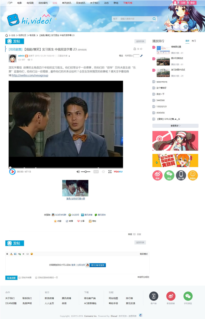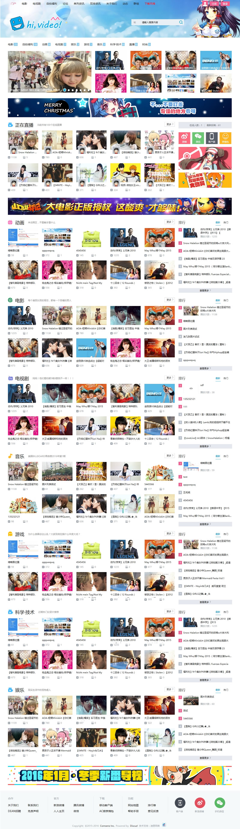 1.模板名称:”Hi!video风格”,版本支持:discuzx3.0版本,discuzx3.1版本,discuzx3.2版本,包括①网站首页②视频列表页,内容页面③论坛版块④论坛列表页⑤论坛内容页⑥论坛门户首页⑧瀑布流⑨关于我们10.文章列表页(一排,两排模式)内容页11.其他页面等(可以添加N个)等,网站代码工整简洁seo优化良好,让您网站更佳汇聚人气,助您网站成功!