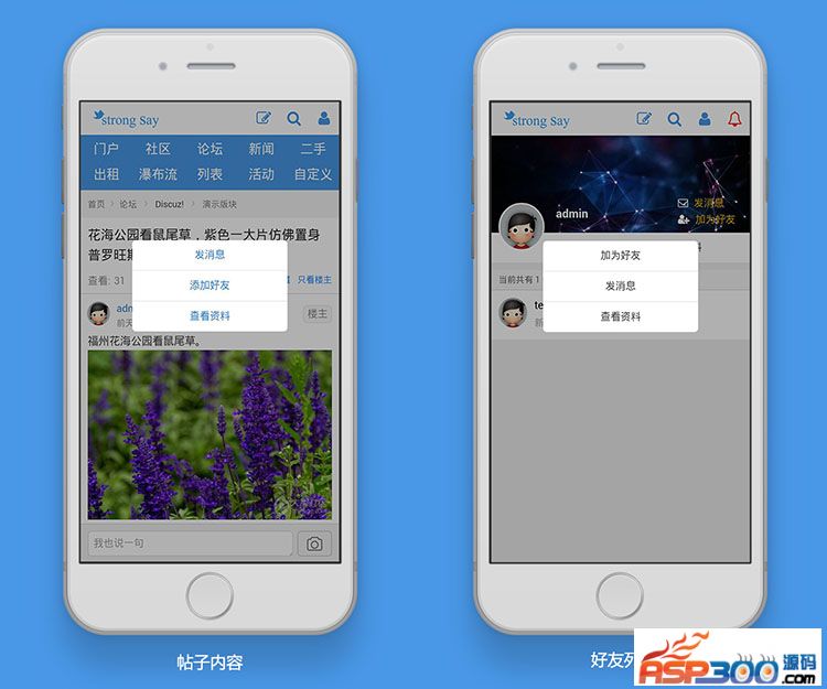 支持快捷发布短消息(大大增强用户互动,在帖子页可以点击用户名,直接选择发送消息)