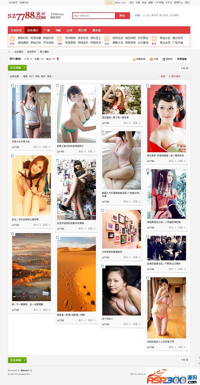 安装教程:先将文件夹【sz7788_bbsfen】传到空间上的【template】文件夹下,然后进入后台:界面——风格管理 选择模版进行安装即可。