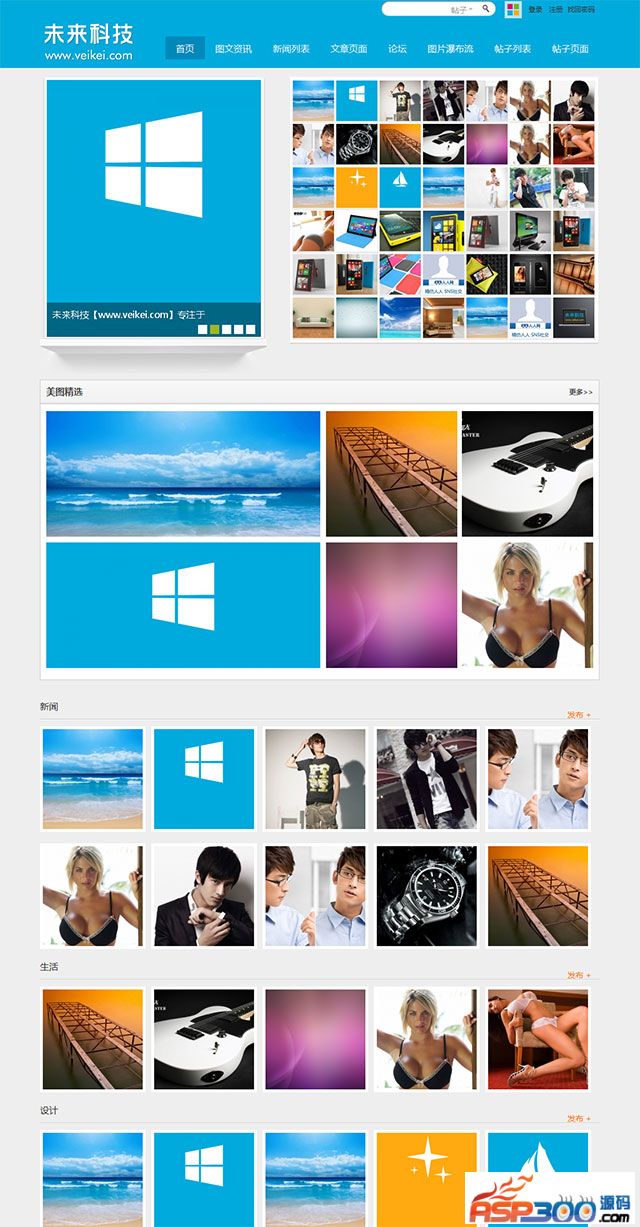 2、【图片支持瀑布流】【帖子列表页】、内容页【社交化】【简洁化】、同时完美支持【瀑布流】。