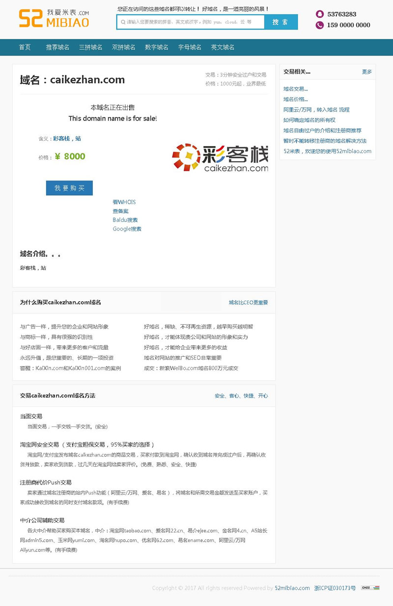 4.后台可控制域名首页的显示,同时域名增加了详细介绍;