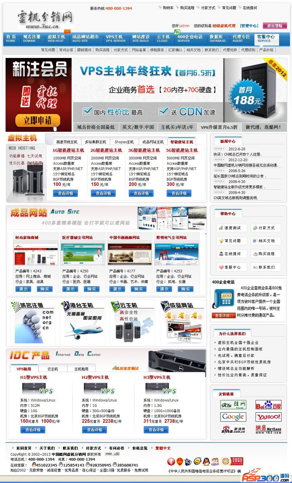 1.虚拟主机、域名、400电话代理商,利用该系统可以创立自主品牌并可发展下级代理;