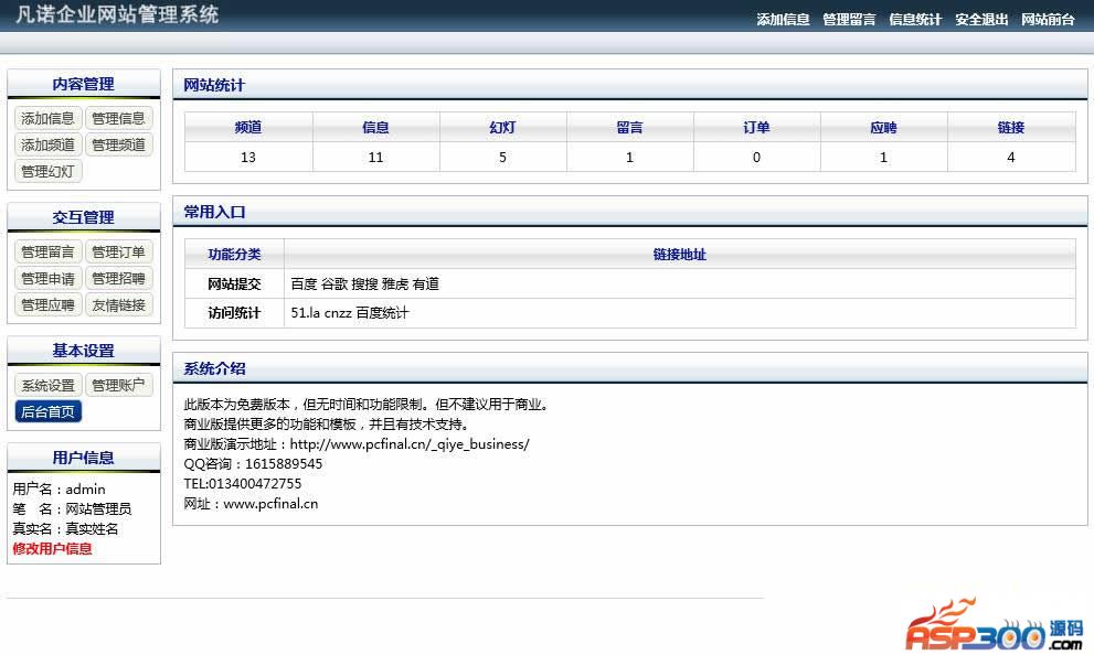 凡诺企业网站管理系统是一个采用asp+access进行开发的asp企业网站源码。