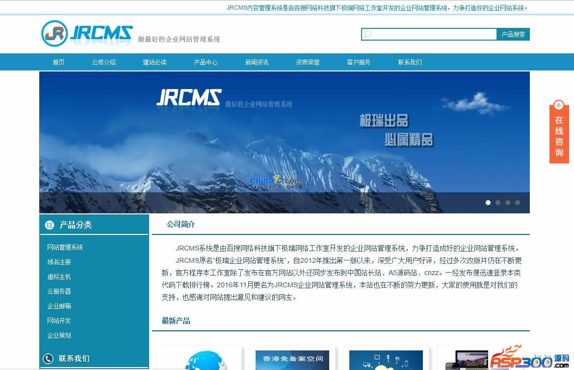 极瑞企业网站管理系统更名为JRCMS,自2012年推出第一版以来,深受广大用户好评,经过多次改版并仍在不断更新,官方程序本工作室除了发布在官方网站以外还同步发布到中国站长站、A5源码站、cnzz。一经发布便迅速登录本类代码下载排行榜。2016年11月更名为JRCMS企业网站管理系统,本站也在不断的努力更新,大家的使用就是对我们的支持,也感谢对网站提出意见和建议的网友。