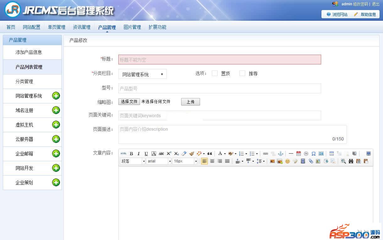 内容管理包含新闻资讯,产品,图片管理功能,具备二级分类功能,各内容页可单独设置kewords,description信息,进行单页SEO优化;站点新闻搜索系统。
