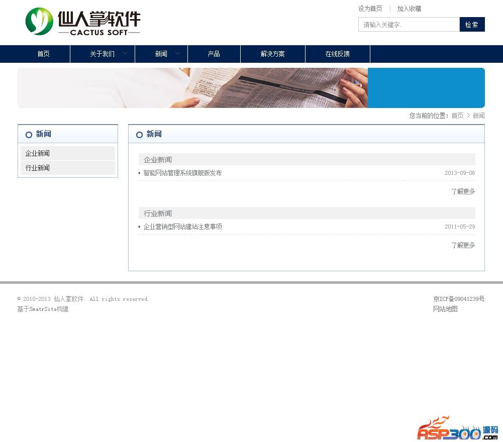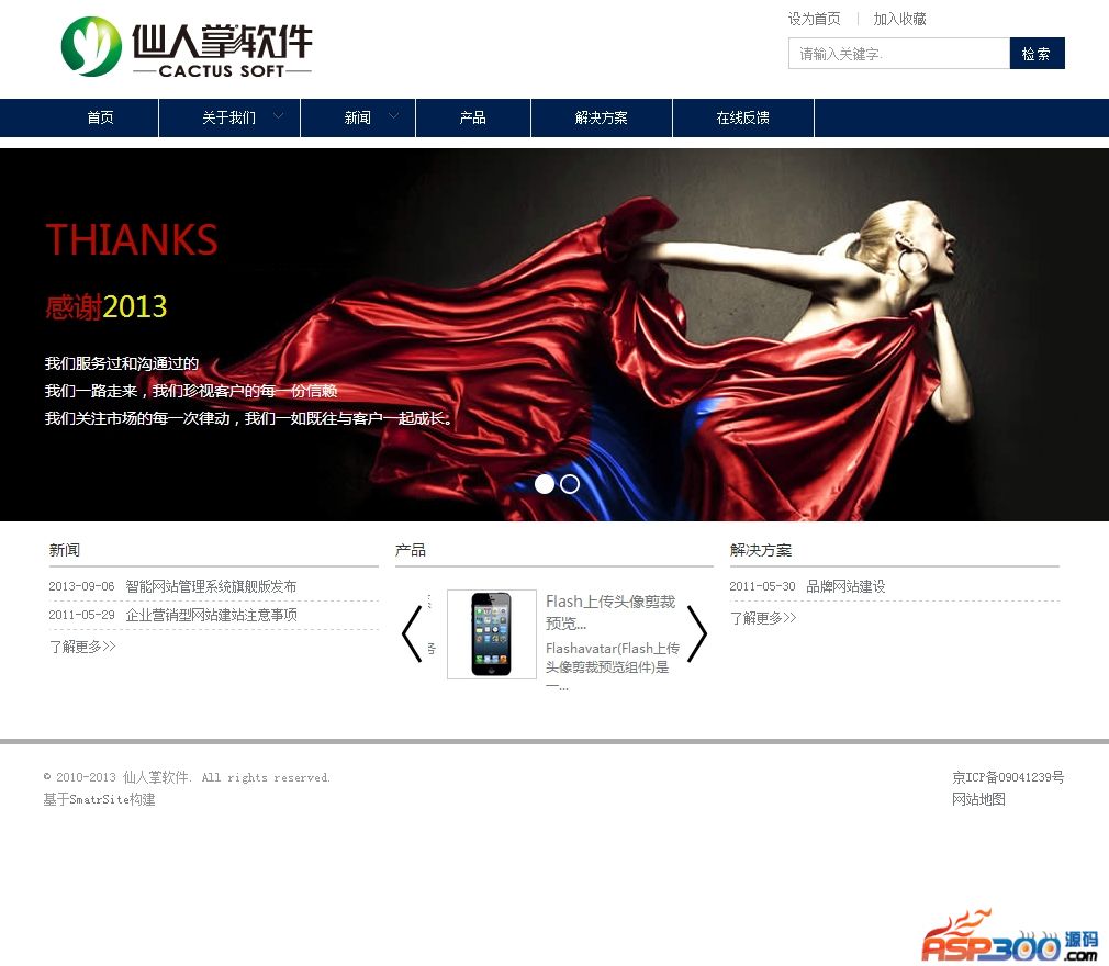 智能网站管理系统( SmartSite )是由仙人掌软件基于asp+access环境下开发的企业级网站管理系统。SmartSite 内置单页、新闻、产品、视频、下载四大内容模型,在很大程度上满足了更多层次用户的需求和发展需要。会员、在线招聘等功能,加强网站的互动性的同时也可为网站的发展带来一定的盈利模式。