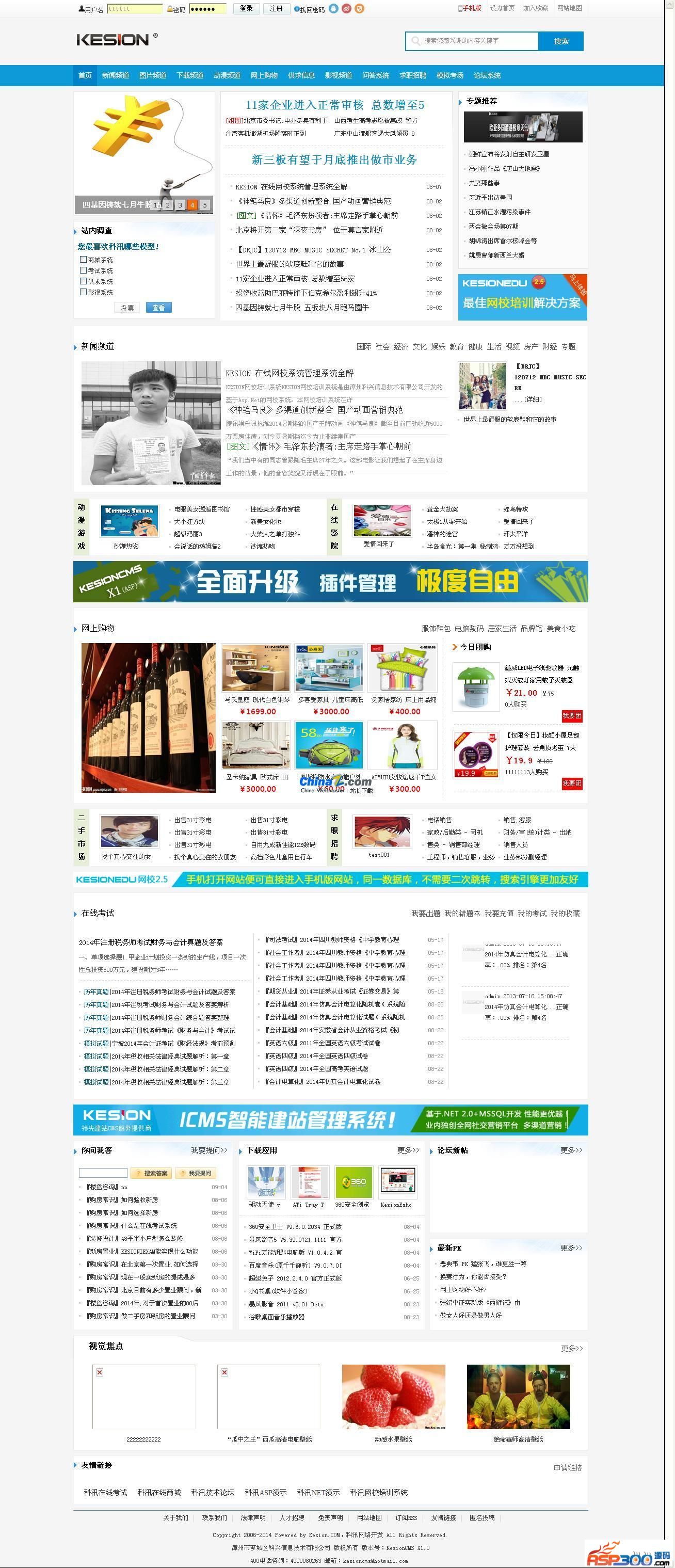 KesionCMS是漳州科兴信息技术有限公司开发的一套万能建站产品,是CMS行业最流行的网站建设解决方案之一。最新版X1.0把主系统及一些辅助系统模块化开发,前后台UI采用HTML5全新架构,方便随时删除(隐藏)安装所需要的模块。应广大用户群体建议,此次版本改动所有涉及编辑器和视频播放的模块,全部采用百度编辑器(ueditor)及ckplayer视频播放器,改进后的视频(flv,mp4等格式视频)支持在手机上播放。且新版本X1.0增加了手机短信接口,可以启用注册会员短信验证注册,手机取回密码,商城支付短信通知,手机号码实名认证,商城订单提醒,稿件审核,后台给指定会员群发手机短信等等。