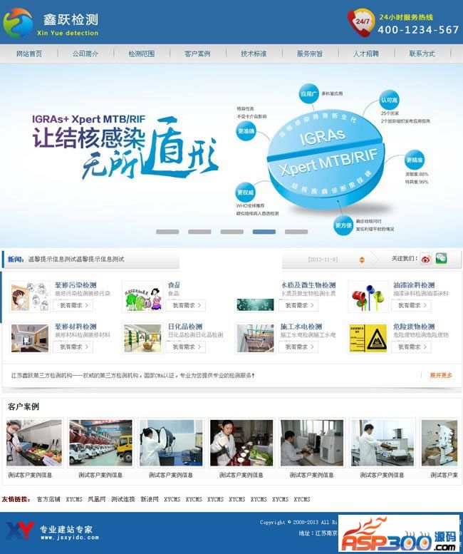 XYCMS检测机构建站系统模板源码后台路径admin,用户名,密码都是admin