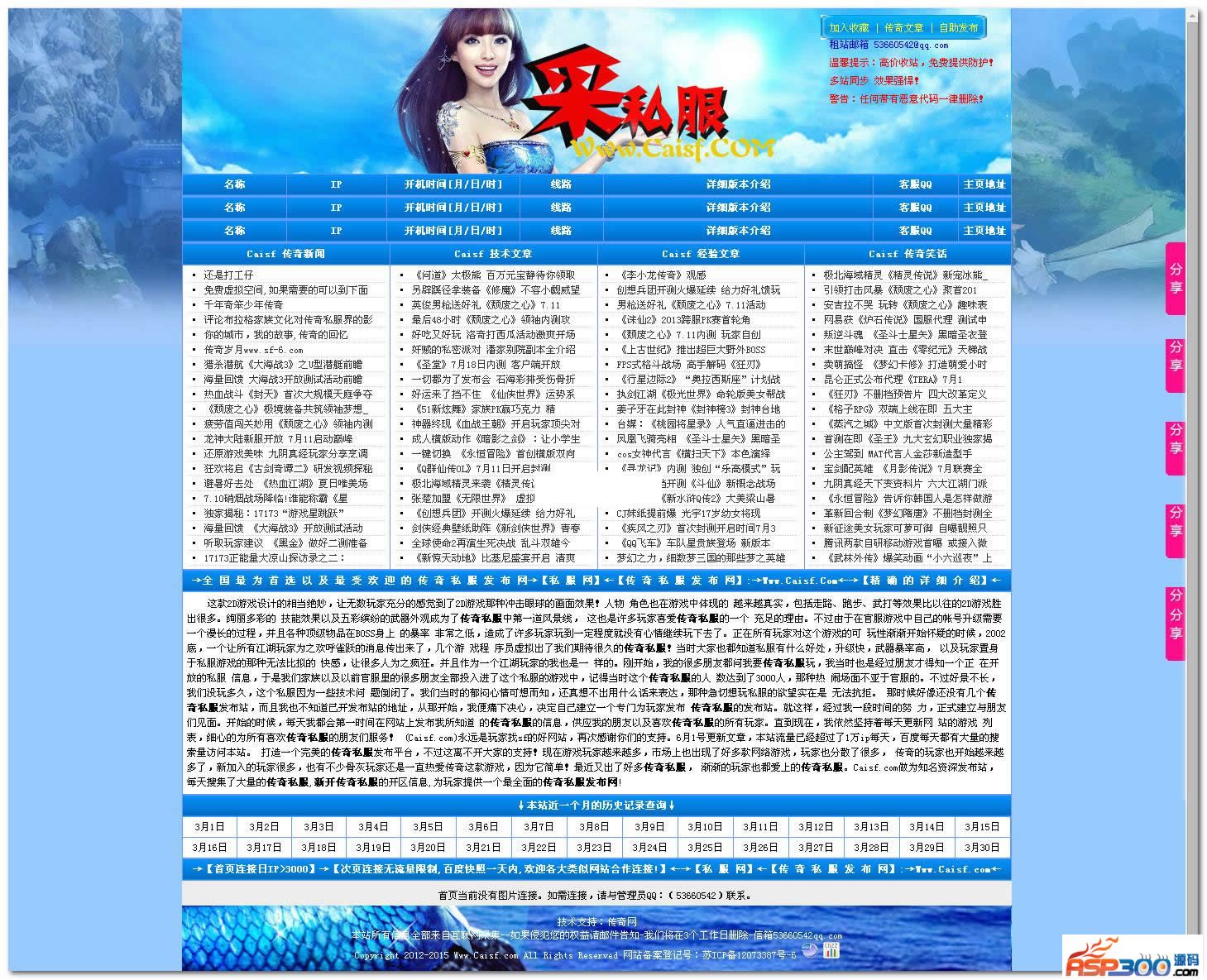 提供完整完全无限制智能发布站程序!永久采集+自助发布系统-智能一键发布系统!头部更改:Inc/Cls_Public.asp文件 底部top.asp文章需要生成HTML才能访问!重要!数据库 Gamedata/#sdfsdfaaddsfedsffdsggfhhdf.asa 自行改名,改后同时更改inc/config.asp及Cls_Config.asp文件后台地址 http://你的域名/admin/ 请自行更改。对联广告在 adfile/ALL_PF.JS 修改 或者在后台直接增加logo广告左边的或右边的默认密码:在文件里面登陆后更改 更改后首先生成首页及其他页面。上传之后请立马修改密码。以便被盗….修改QQ以及网站代码就可以用还会不定时的给大家带来版本以及发布站程序网站…..敬请等待。。