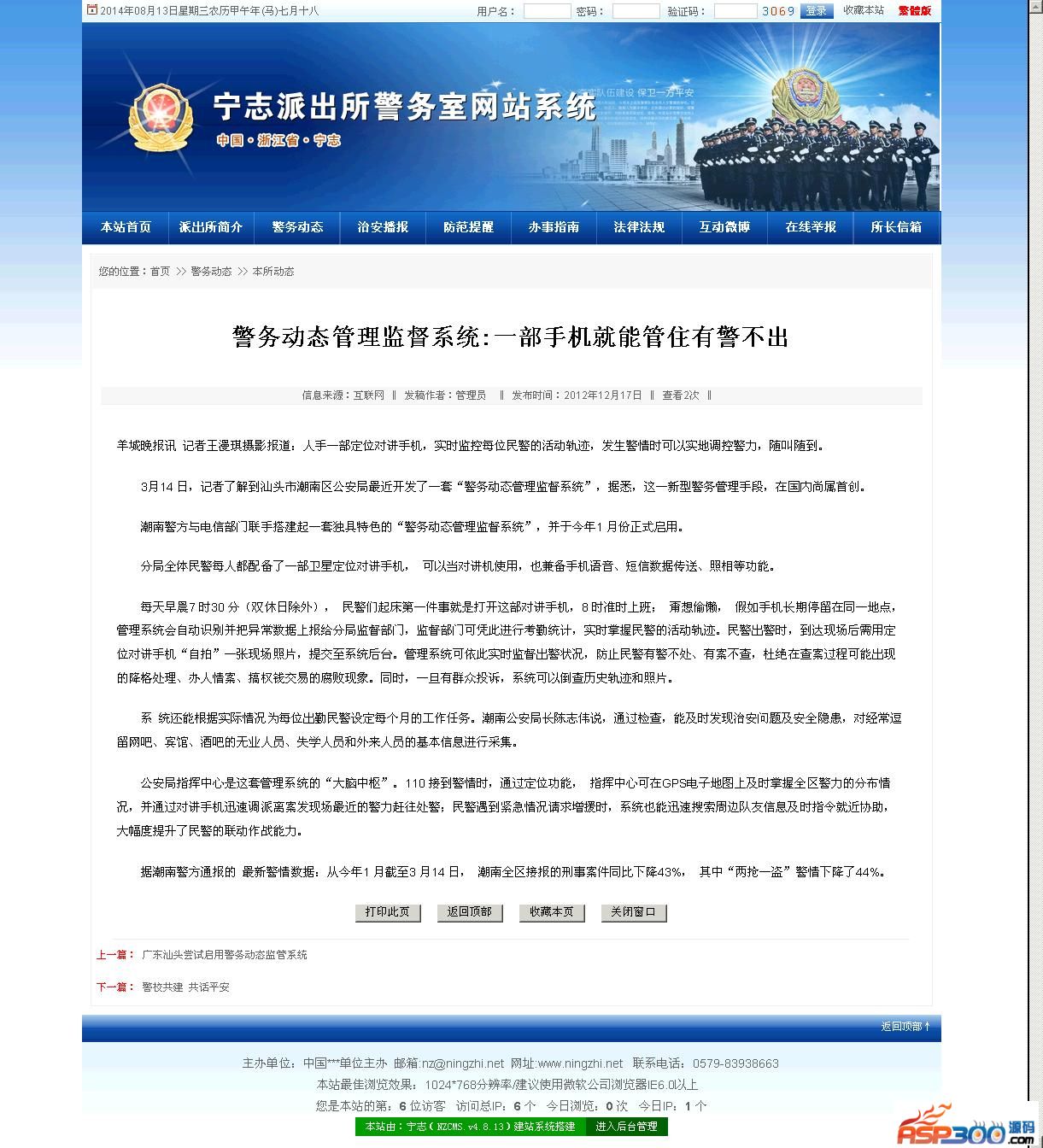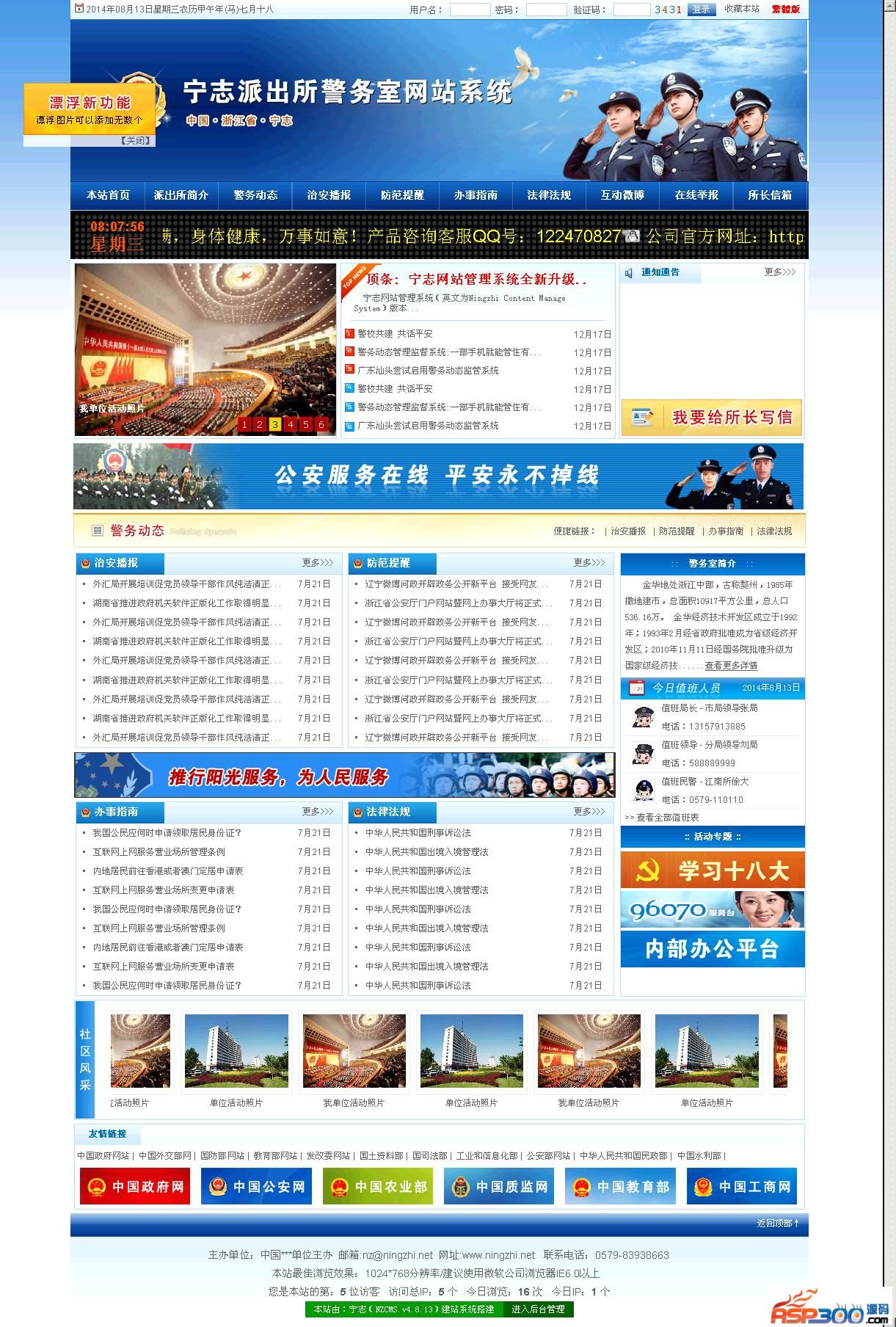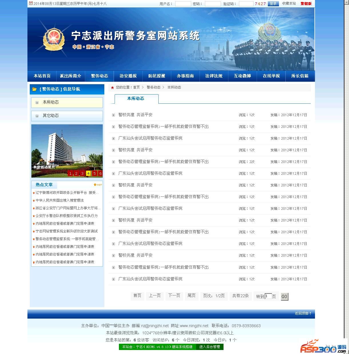 宁志派出所信息门户网站管理系统一套专为机关派出所建站首选的信息网站管理系统,天蓝色风格宽频页面十分大方。