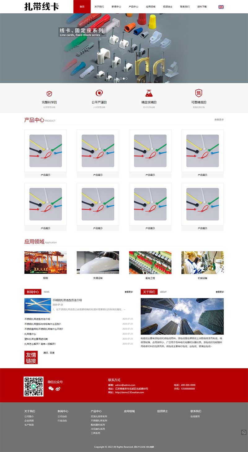 PbootCMS内核开发的网站模板,该模板适用于配线器材网站、扎带线卡网站模板等企业,当然其他行业也可以做,只需要把文字图片换成其他行业的即可;
