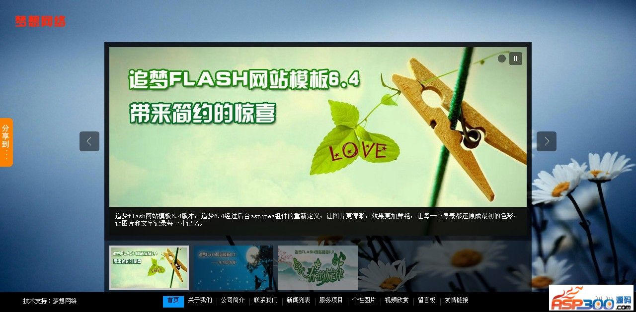 追梦6.5功能说明:1.新增加wap访问模式。2.无需安装,上传可用快速建站。3.支持新闻栏目发布。4.经典相册栏目,加载快速。5.支持视频以及弹出播放优酷视频。6.支持mp3背景音乐。7.高清背景图上传,识别特殊文字符号。8.支持优化参与搜索引擎排名。9.ASP后台,ASPjpeg组件提高网站图片管理效率。10.后台路径 xmleditor/login.asp admin/admin