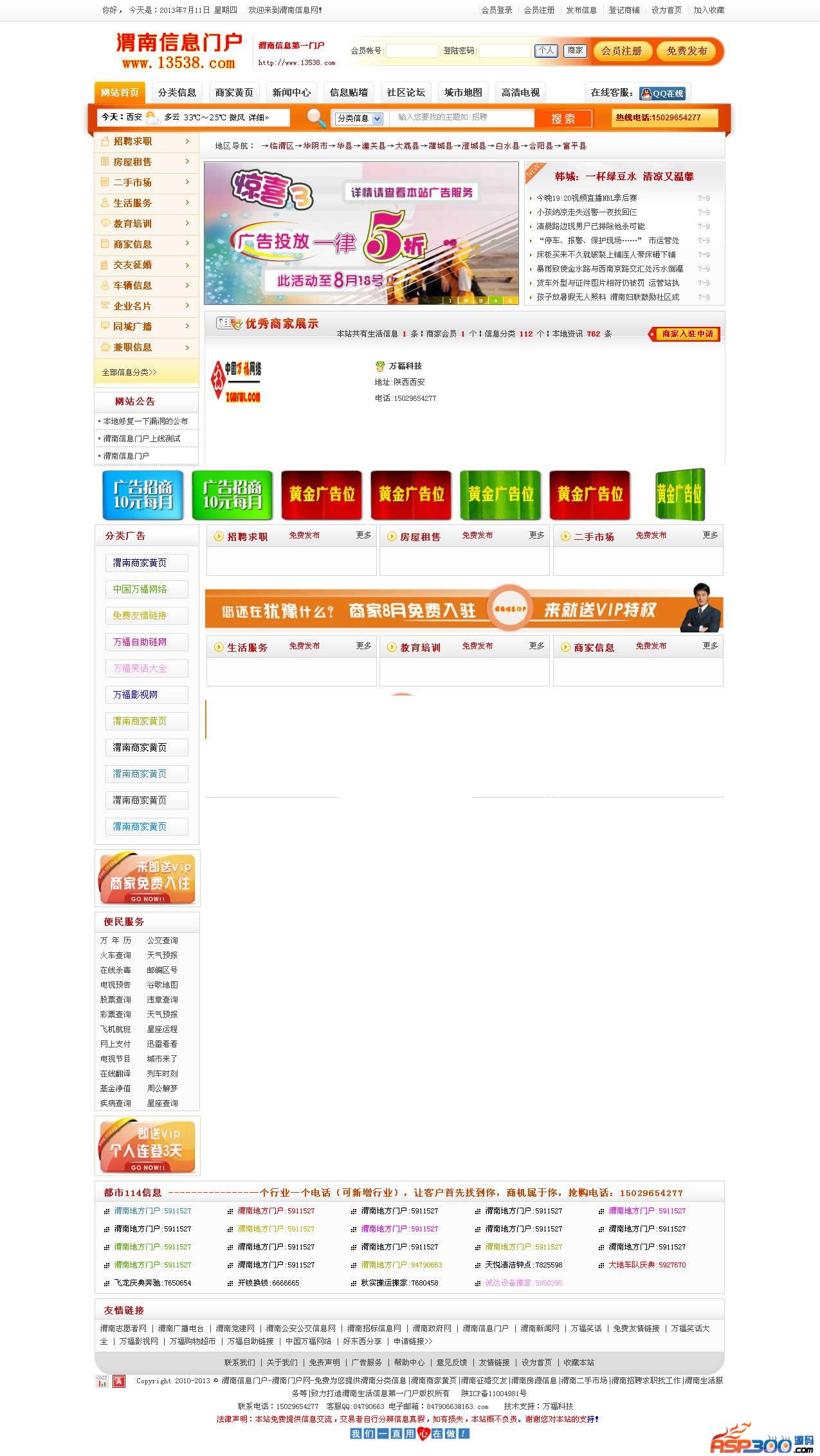 渭南地方生活门户信息网站源码声明