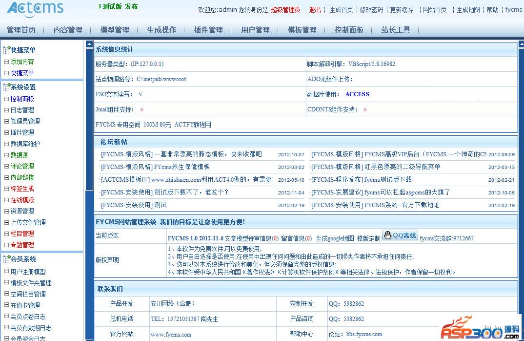 FYCMS是一款具有强大的功能的基于ASP语言的开源内容管理软件,有UTF-8和GB2312两个编码版本,支持ACCESS和MSSQL两种数据库。FYCMS是一款完全开源的程序,都毫无保留的完全开放源代码,用户不需额外安装其他DLL组件,其最大的特点是易用。