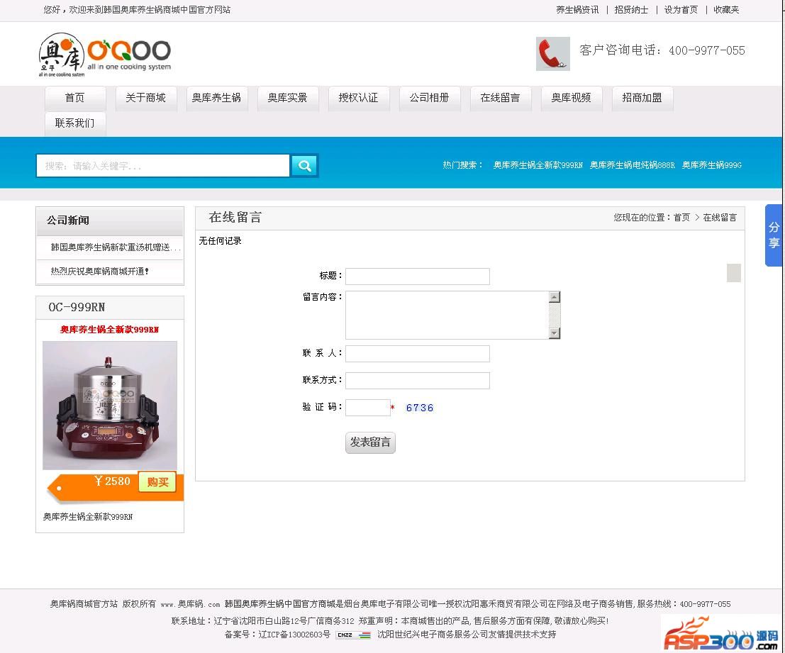 养生锅首选奥库锅,韩国奥库养生锅中国官方商城是烟台奥库电子有限公司唯一授权沈阳惠禾商贸有限公司在网络及电子商务销售,本商城售出的产品,售后服务有保障,敬请放心购买。沈阳世纪兴网站建设公司现在开源免费为创业者使用。