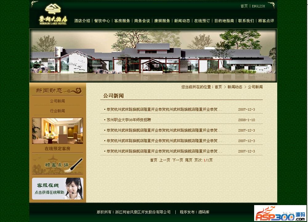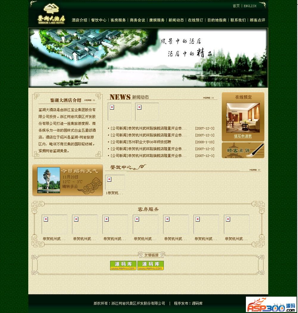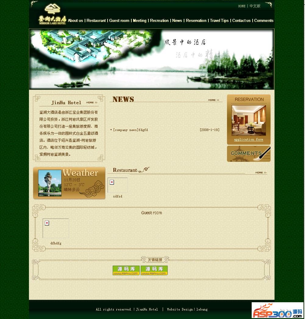 中英双语绿色风格某酒店网站整站源代码,界面非常漂亮!后台地址:admin用户名和密码:admin