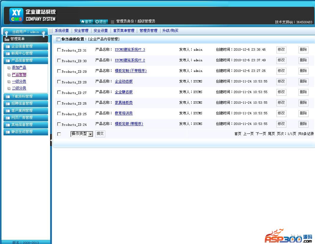 产品内容管理:对产品类别进行管理,分为大类和小类,发布最新产品信息
