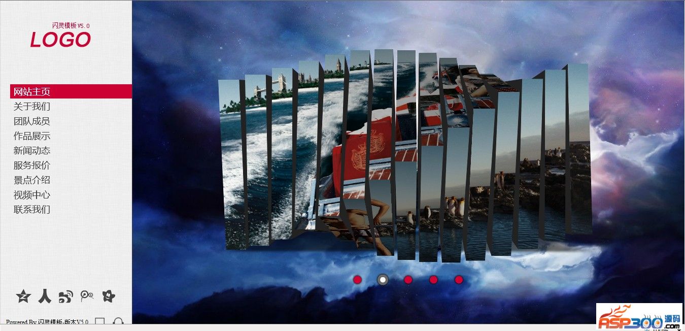 闪灵模板V5.0是Flash网站之家发布的第5款模板,从制作起就汇集了之前其他款模板的优点,无论是图片自动处理,还是影音播放,都汇集一身,5.0模板的款式可以用炫酷来形容,3D的界面效果加上更多的图片展示,让网站更吸引用户,经过处理的全新加载模式极大提高网站后台管理效率,闪灵模板V5.0,让网站更加绚丽。演示地址:http://www.flash-soul.com/v5