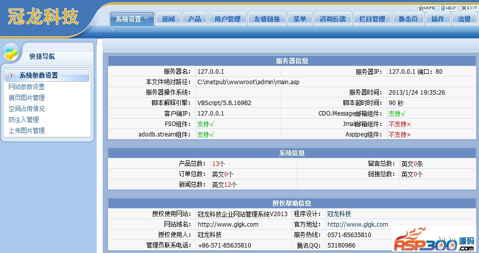 2,前台增加FLASH显示功能,采用XML技术,后台自己更好FLASH的图片,操作简单。